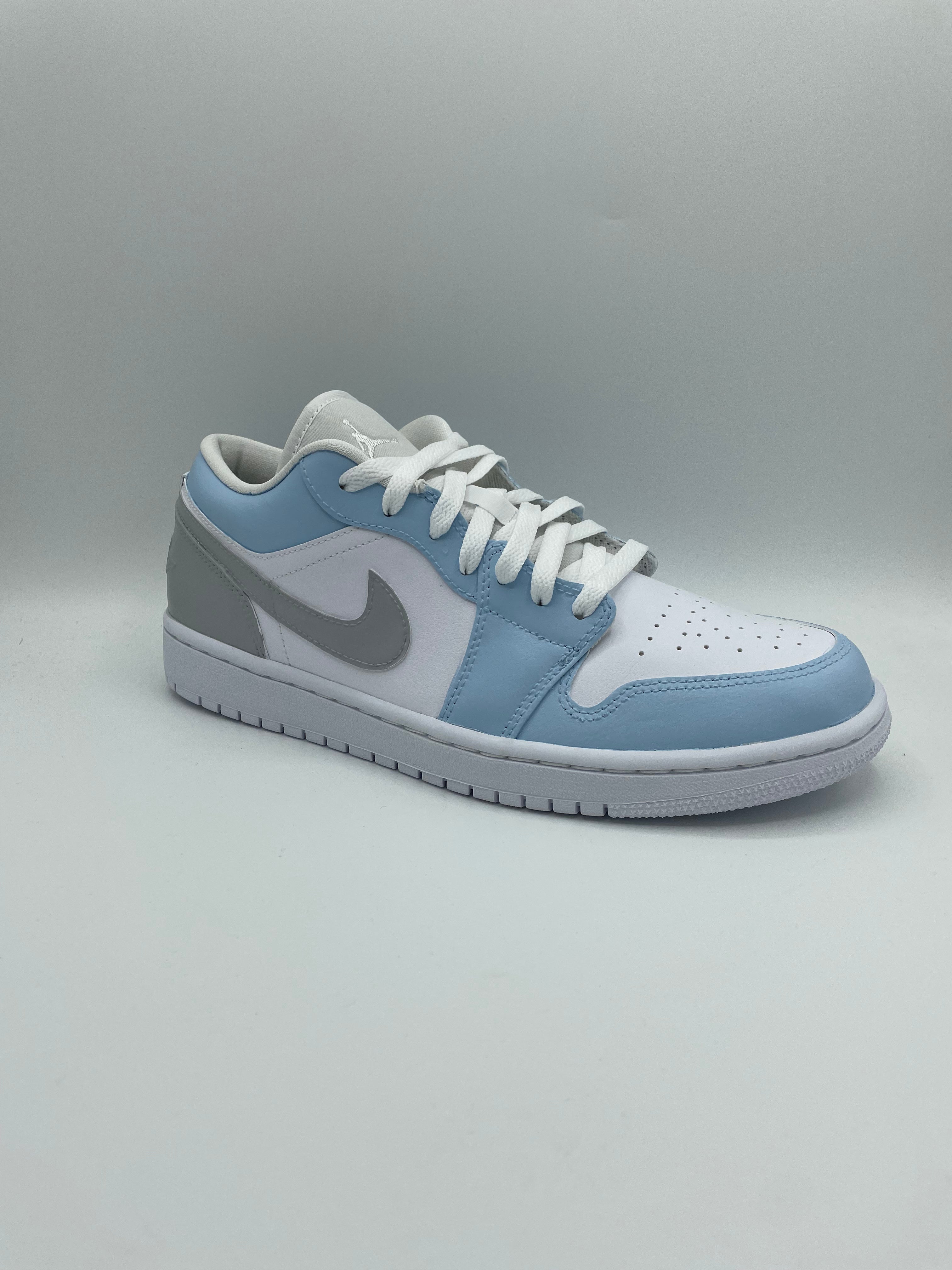 Custom NIke AJ1 Low Sneaker- Gray & Baby Blue